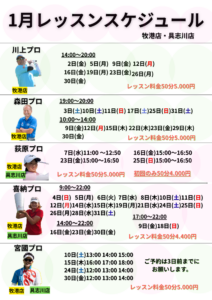 【1月プロのレッスンスケジュール】牧港店・具志川店