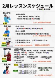 【2月プロのレッスンスケジュール】牧港店・具志川店