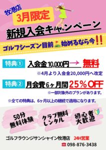 牧港店より3月限定新規入会キャンペーンのご案内です⛳